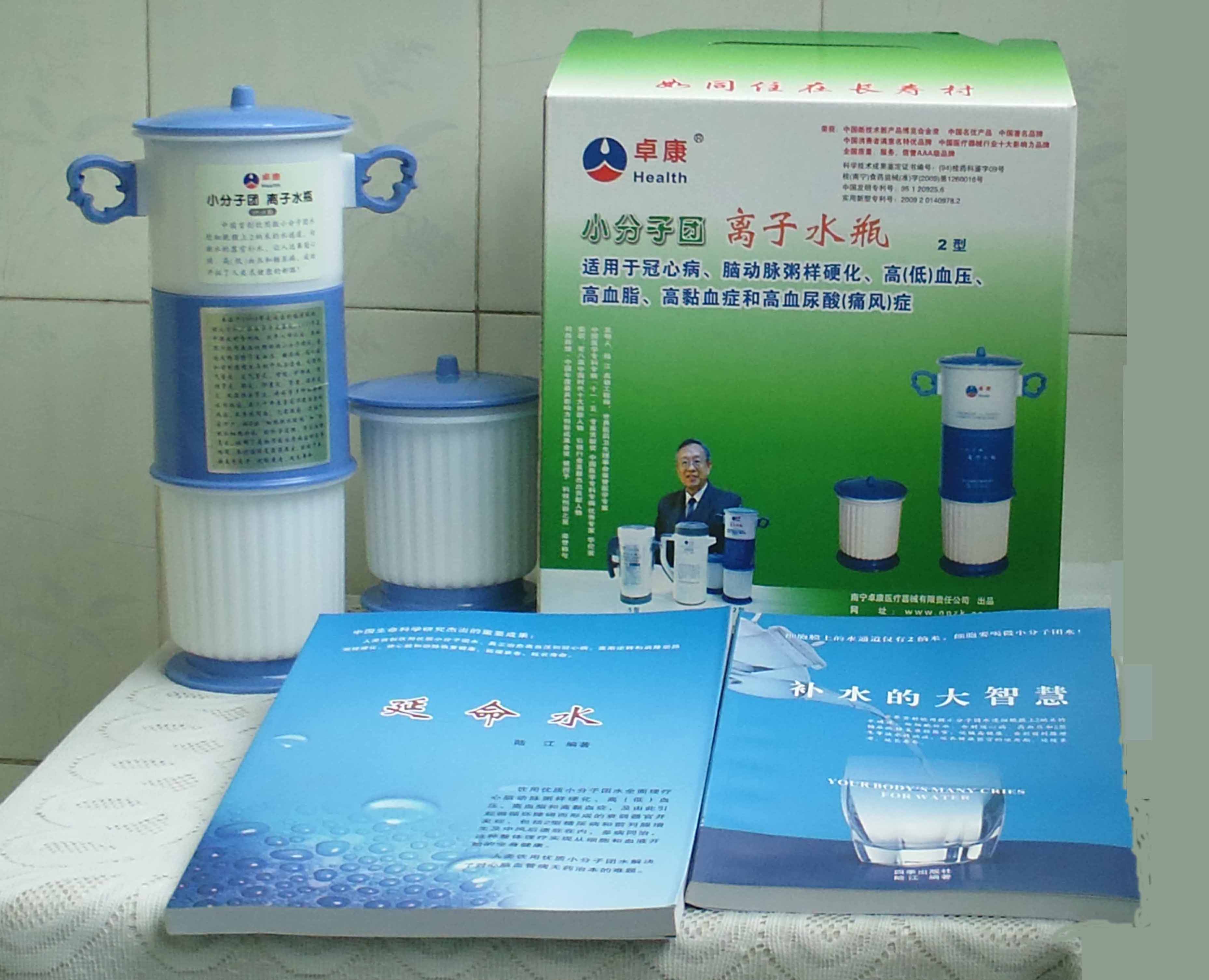 本品大量用戶的使用效果表明,能治愈冠心病、腦動脈硬化、原發(fā)性高(低)血壓、高血脂、高粘血癥、高血尿酸癥(痛風(fēng))和2型糖尿病、衰弱器官并發(fā)癥(前列腺增生、腎衰與尿毒癥)及中風(fēng)后遺癥等療效好。產(chǎn)品配信譽卡。使用壽命30年,不換芯,易清洗。團購優(yōu)惠。從郵局匯款,匯費1%,地址按本頁下方地址、聯(lián)系人寫。從銀行匯款,請點擊[聯(lián)系匯款]欄,從工商銀行匯款,建設(shè)銀行、農(nóng)業(yè)銀行匯款,均免收匯費,匯款后20--30分鐘內(nèi)發(fā)短信,可用微信轉(zhuǎn)帳,均免匯費,微信號即手機號13768308380。匯款后,告知你的姓名和地址,我公司聯(lián)系人手機號是:13768308380卓康牌離子水瓶為我公司獨家生產(chǎn),郵購產(chǎn)品配《補水的大智慧》彩印書一本,另配四季出版社出版的新書《補水的大智慧》一本,并配光盤一張(含央視主持人釆訪陸江的對話視頻)。目前市場和"淘寶網(wǎng)"上有人兜售假冒的偽品,望讀者審察辯別真?zhèn)危旒僬哓飧`假冒本公司的各種認(rèn)證、獲獎獎項、專利號和外包裝盒上的中英文字,包括科技成果的鑒定意見等,請讀者注意防偽。如何識別假貨?已經(jīng)買了假貨怎么辦?(請點擊[打假掠影][打假掠影])。